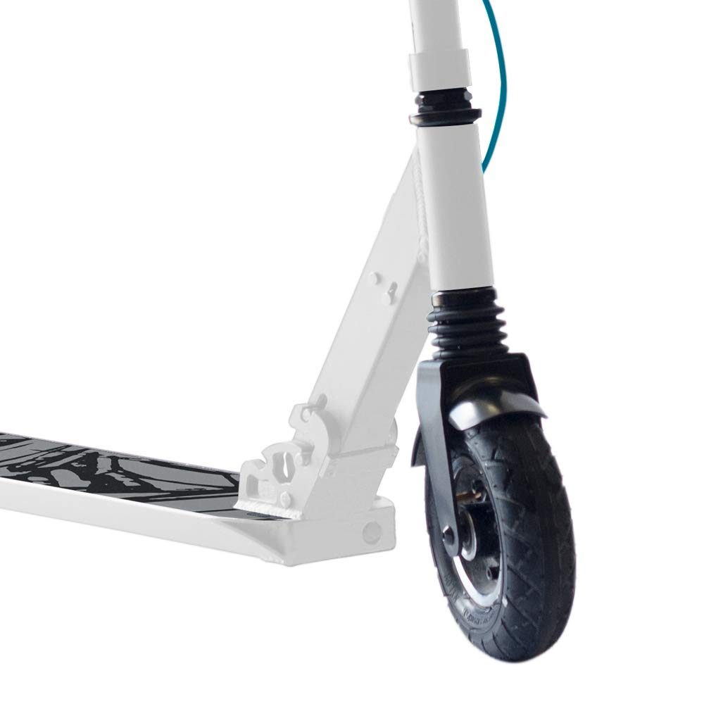 - RUEDAS: Rueda neumática delantera para absorber baches y rueda trasera maciza para evitar pinchazos. Tamaño de 8″.