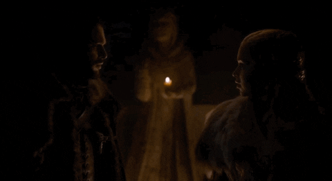 Sin duda es la oportunidad de Jon para contarle todo a Danni (como suele llamarle), le explica que Bran y Sam le han dicho que es hijo legítimo de Lyanna Stark y Rhaegar Targaryen, Daenerys estupefacta no le cree, le pregunta como puede saber si eso es cierto y Jon le dice: «Mi verdadero nombre es Aegon Targaryen» (BOOM!!!).