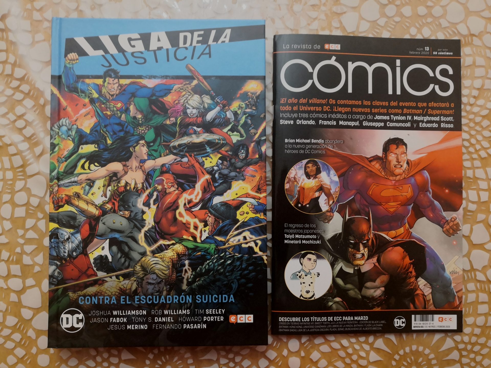 Este tomo cartoné que ha publicado ECC, de 336 páginas, lleva consigo los siguientes originales de USA: Justice League vs. Suicide Squad 1-6, Suicide Squad 8-10, Justice League 12-13. En esos números, un vasto equipo de grandes profesionales de la industria nos dejaban un nuevo asalto entre estos dos equipos. Por un lado, en el apartado del guion, se encuentran Joshua Williamson, Si Spurrier, Tim Seeley y Rob Williams. Y por otro lado, en lo que al apartado artístico se refiere, disfrutamos de unos geniales panales y splash pages (que no son pocas, y son geniales) gracias a: Jason Fabok, Tony S. Daniel, Jesús Merino, Fernando Pasarín, Robson Rocha, Howard Porter, Scot Eaton, Riley Rossmo, Christian Duce y Giuseppe Cafar.