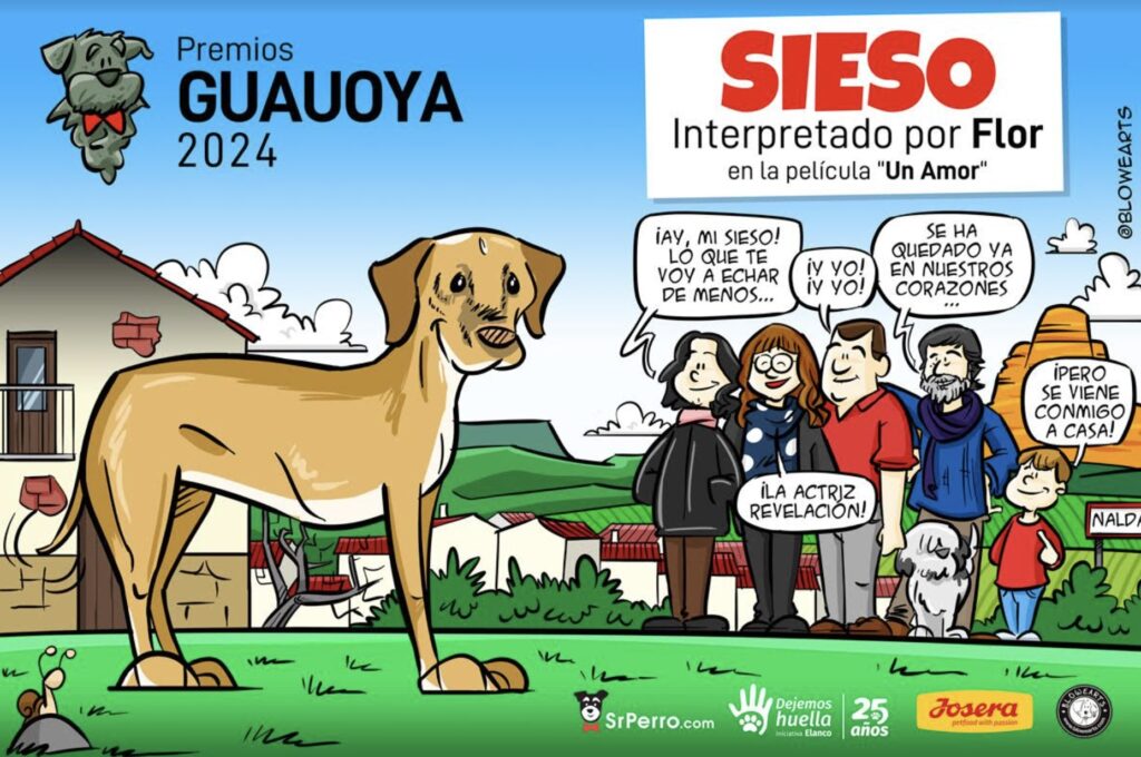Los premios más caninos, cinéfilos y solidarios de España, los GUAUOYA, organizados por SrPerro.com, han elegido rendir homenaje en 2024 a la magnética actuación de Flor, la perra que encarna a Sieso en Un Amor, la película dirigida por Isabel Coixet.
